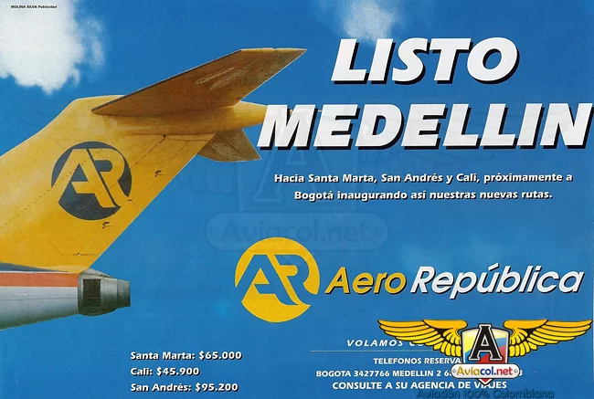 Reseña Histórica:Durante los primeros años de la década de los 90 Colombia se encontraba inmersa en la política de apertura económica del presidente César Gaviria, y aunque había muchos problemas y trabas, con el liderazgo de Alfonso Ávila Velandia quién había trabajado en la industria aérea anteriormente y de Amos Ginor, comenzaron conversaciones y negociaciones en 1992 para crear a AeroRepública, la primera aerolínea en ser creada en Colombia en muchos años. La iniciativa tuvo eco y se logró concretar el apoyo de bancos y grupos empresariales de Colombia y Estados Unidos.