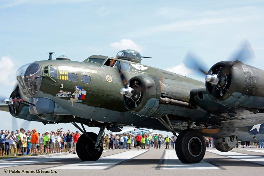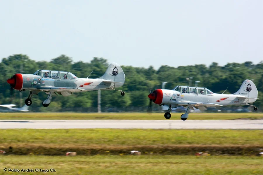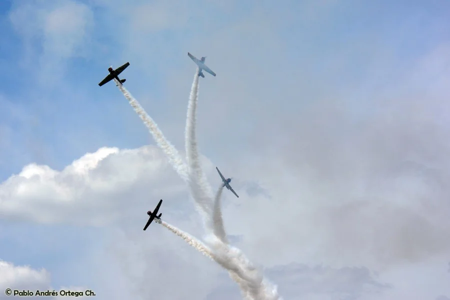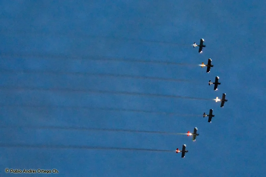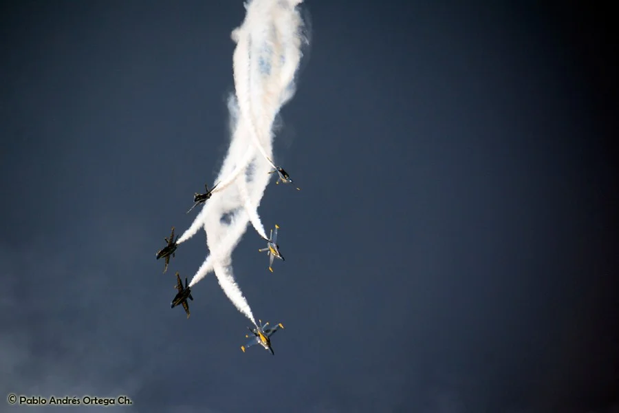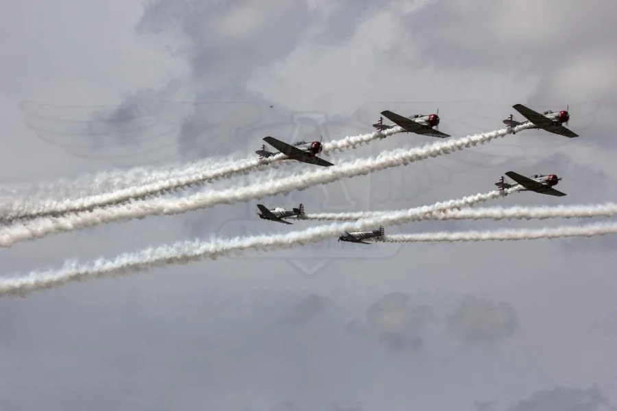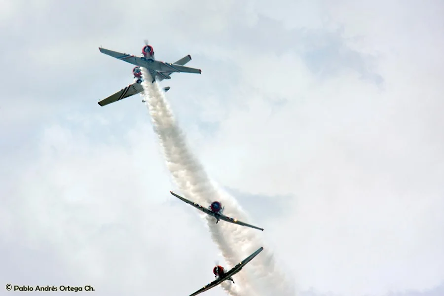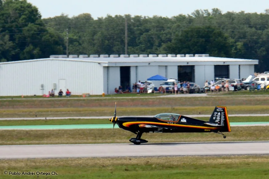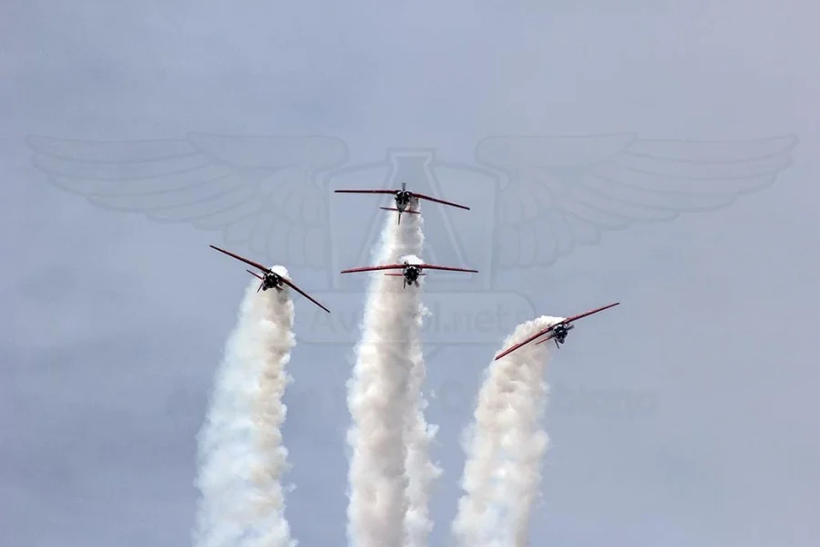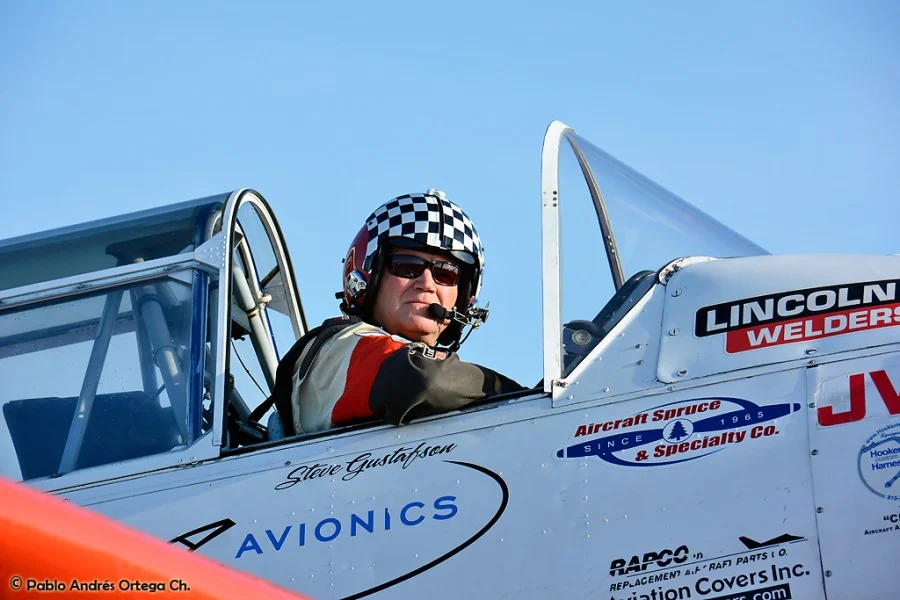 Los GEICO Skytypers también hicieron lo suyo escribiendo en el cielo y volando en formación. Fuimos invitados a volar con ellos durante una de sus presentaciones, en las que pudimos disfrutar del espectáculo desde otra perspectiva. Adicionalmente hubo sesiones de acrobacia diversa de las cuales se destacan las presentaciones de David Martin a bordo de un CAP-232 de Breitling, un Beech 18 bastante aguerrido y Patty Wagstaff, la primera dama de la acrobacia, en su Extra 300S de fabricación alemana.