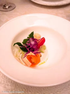 El lugar escogido fue Tre Galline, un restaurante con comida típica “piemontese”. Yo escogí el menú de degustación, del que destaco unos agnolotti deliciosos, rellenos de carne. Ordenamos también un vino de la región, para acompañar nuestra velada fraterna.